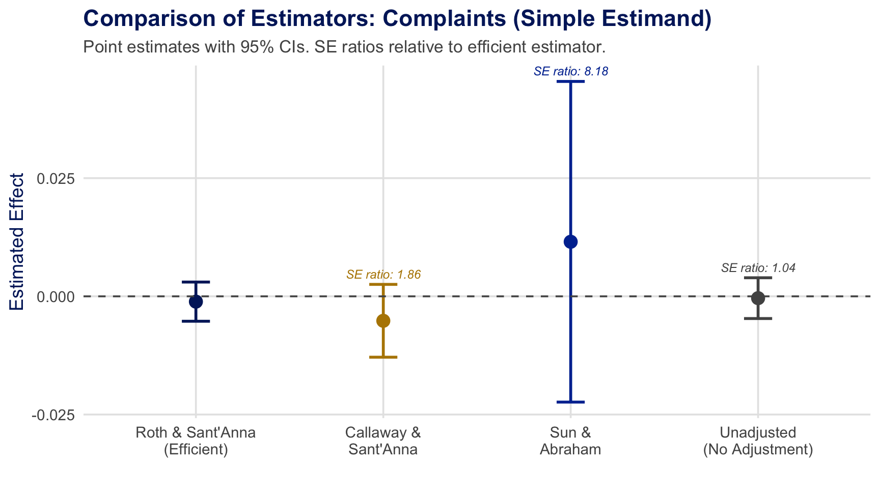 Comparison: Plug-in efficient vs. Callaway-Sant’Anna vs. Sun-Abraham